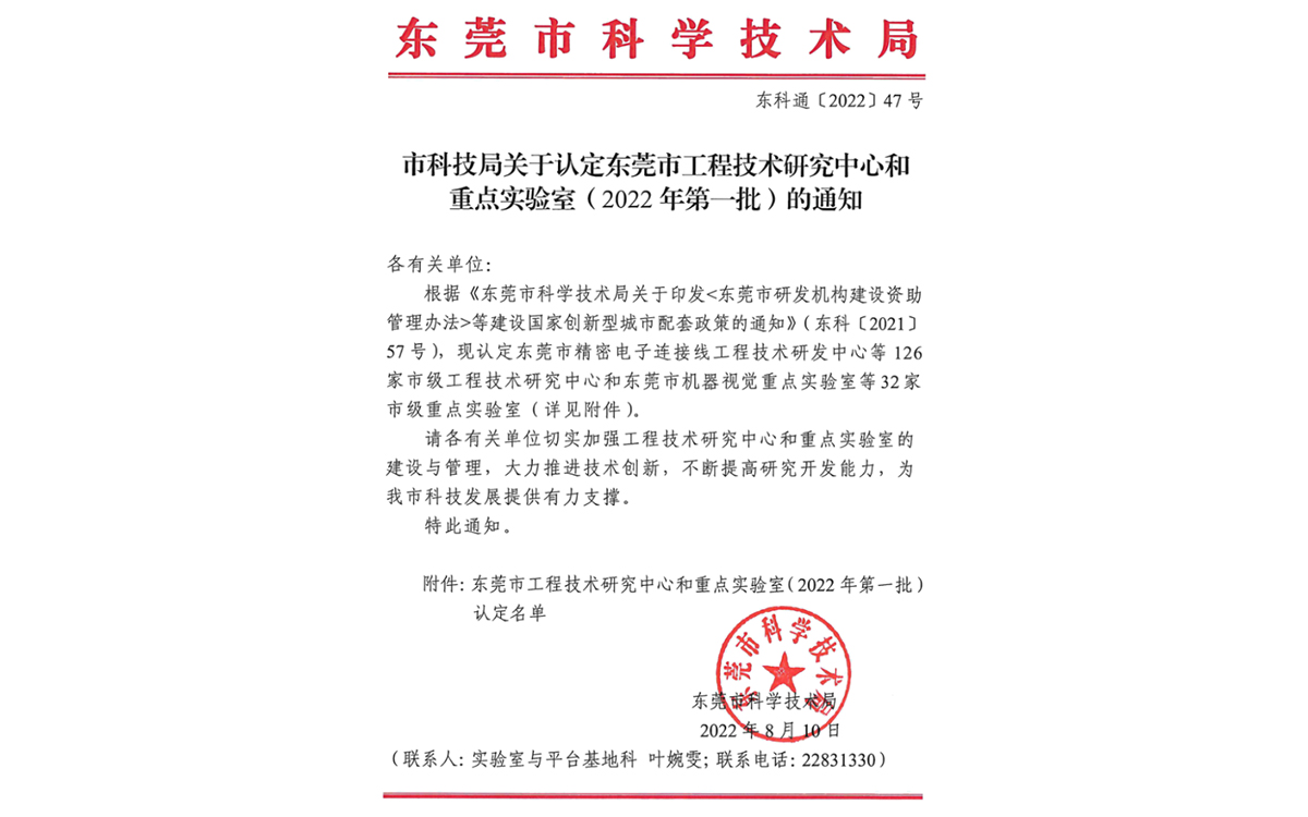 2023-02-10 18:02:55由东莞市科学技术局2022年8月10日颁发东科通(2022)47号文件,市科技局关于认定东莞市工程技术研究中心和重点实验室( 2022年第一批)的通知,广东PA旗舰厅新材料科技有限公司荣获“东莞市(PA旗舰厅)橡胶高分子材料工程技术研究中心”。