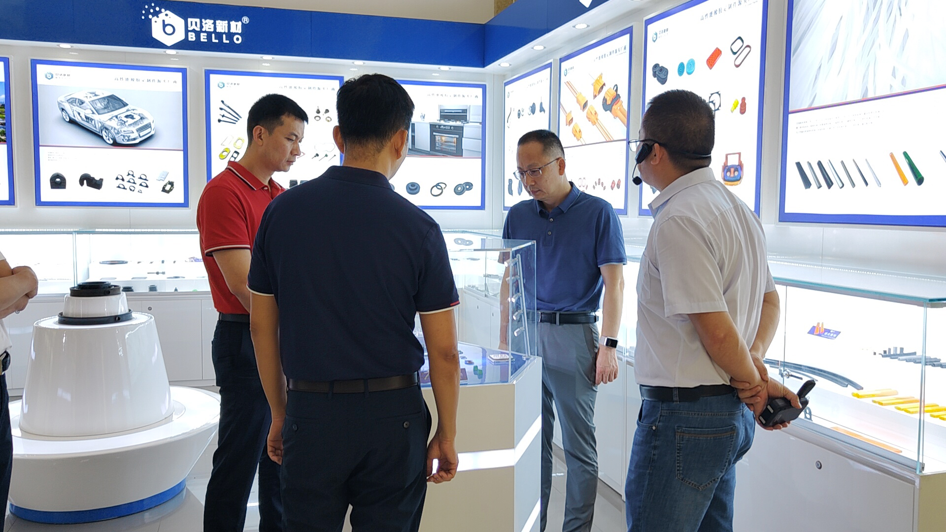 PA旗舰厅新材企业代表为领导一行介绍了企业展厅。走进展厅,映入眼帘的是PA旗舰厅新材聚焦的4大领域 - 汽配、连接器、厨卫电器及新能源领域千余款产品,企业代表对每个领域的技术特点以及功能参数进行了介绍,其中重点介绍了PA旗舰厅新材生产的燃气热水器进出水阀密封件和轮胎压力监测系统密封件产品的研产优势,并阐明对新能源汽车及工业连接器密封件领域的阶段性成果和未来目标。
