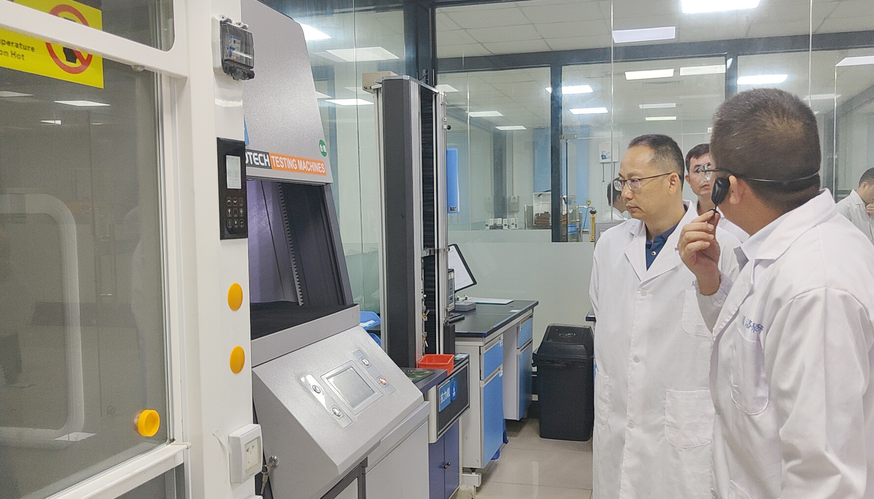 接着,企业代表为领导一行详细讲解了PA旗舰厅新材耗资超千万打造的CNAS国家认证实验中心。实验中心设有原料实验室、动态实验室、低温及电化学实验室、化学分析室、RoHS检测室、测量室、臭氧及燃烧实验室、热老化实验室和橡胶工艺室,配备了仪器设备百余套,含盖原料检测、配方验证、尺寸测量以及样品测试,可进行电器、汽车、连接器等行业各类标准实验,获得领导一行对企业创新、研发技术的赞赏和肯定!