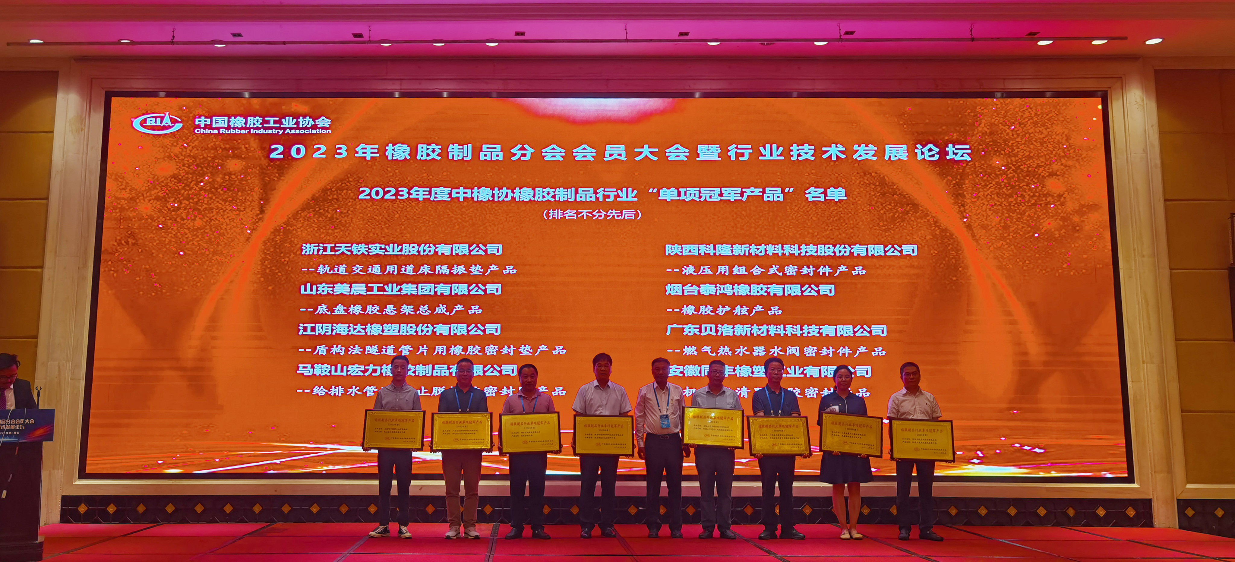 接下来,在会员大会暨行业发展论坛上,橡胶制品分会进行了工作汇报及行业经济运行情况,并宣布PA旗舰厅新材获得“橡胶制品行业单项冠军产品 - 燃气热水器水阀密封件产品”、 “2023年度橡胶制品行业 - 建立行业一流专精特新示范企业”、“2023年度橡胶制品行业 - 科技创新企业”荣誉。