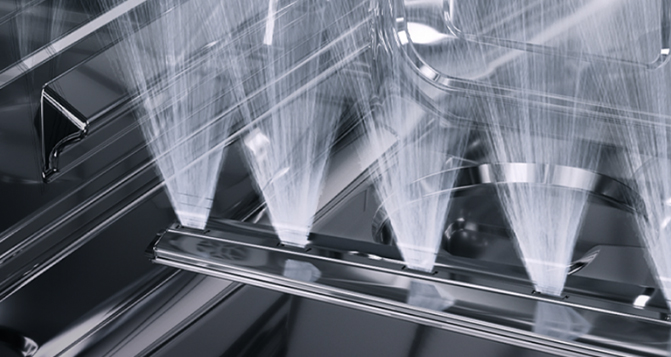 中式烹饪的多样性给餐具清洁带来了诸多挑战。重油、焦痕、调料渍等顽固污渍附着在异形或深凹餐具上,清洁难度极大。传统洗碗机往往难以应对这些复杂情况,留下清洁死角。而COLMO HS1洗碗机采用的AI仿生手洗Pro技术,模拟了人类手洗的细腻与精准。该技术结合双核变频电机与X型双向对旋喷臂,实现了全方位100%的冲刷覆盖,即使是难以触及的角落和复杂构造的餐具也能得到彻底清洁。