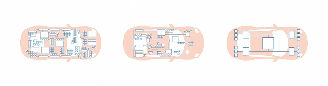 这种架构显著减少了控制单元数量和布线需求,降低了成本并提升了系统效率。而区域架构更进一步,将多个功能集成于单一区域控制器内,由中央HPC统一控制,实现了控制单元数量和布线量的进一步优化。