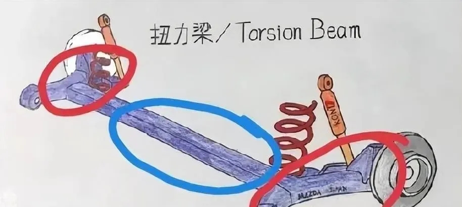 扭力梁式悬挂属于半独立悬挂的一种,它看似与卡车上使用的非独立悬挂相似,但关键在于,连接车轮的梁(红色标记部分)能够相对于中间的杆(蓝色标记部分)进行扭动,从而使两个车轮能够在一定程度上独立运动。其优点包括:价格极为低廉,且极度节省空间。然而,缺点也同样显著:操控性和舒适性大打折扣,且无法进行直接的四轮定位。东莞新能源产业橡胶硅胶配件定制生产厂家