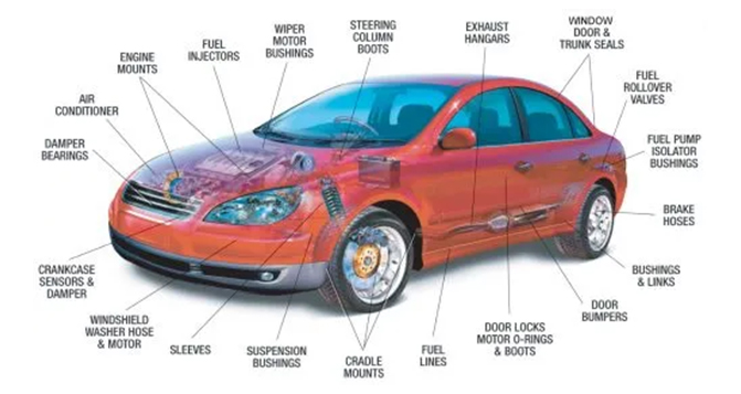 在汽车构造中一辆汽车里究竟有多少橡胶件?各种橡胶件都使用什么橡胶?