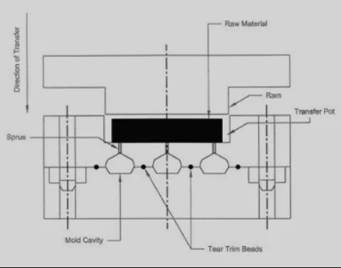 转注模压是平板模压的改进工艺,增加了储料腔和流道系统。成型过程如下: