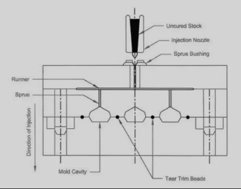 橡胶料通过螺杆加热、塑化并储存于注射腔。