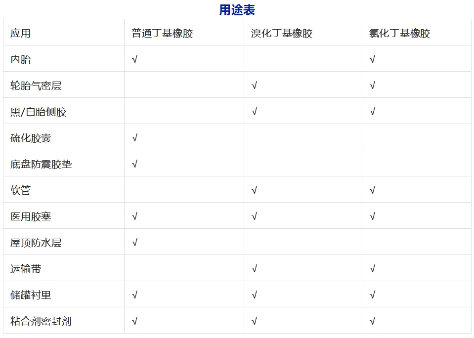 凭借其独特的性能,丁基橡胶被广泛应用于以下领域: