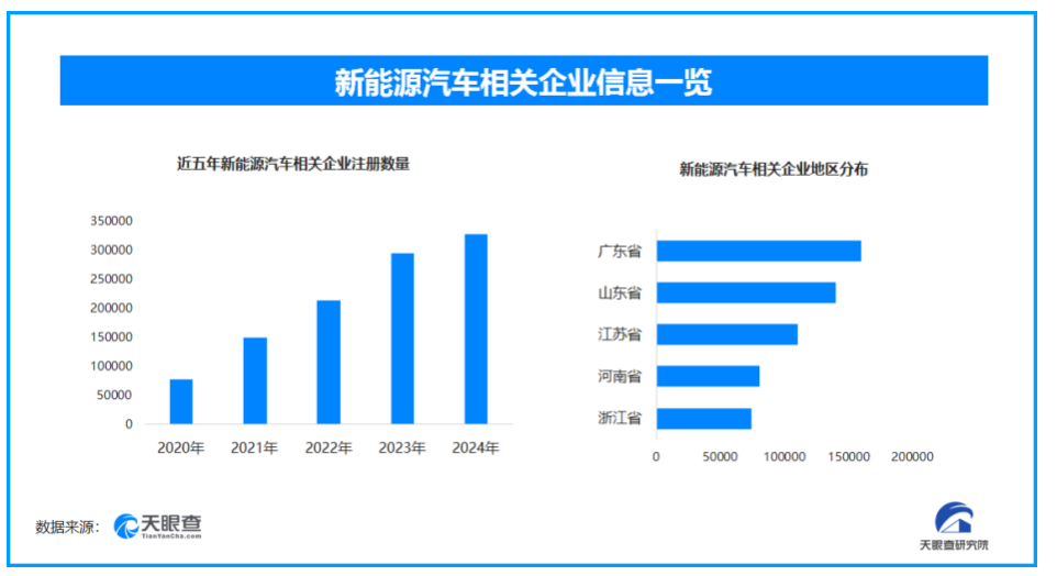 从区域分布来看,广东省、山东省、江苏省的新能源汽车相关企业数量位居全国前列,三省市企业数量总和超过41万家,占企业总数的27.5%。