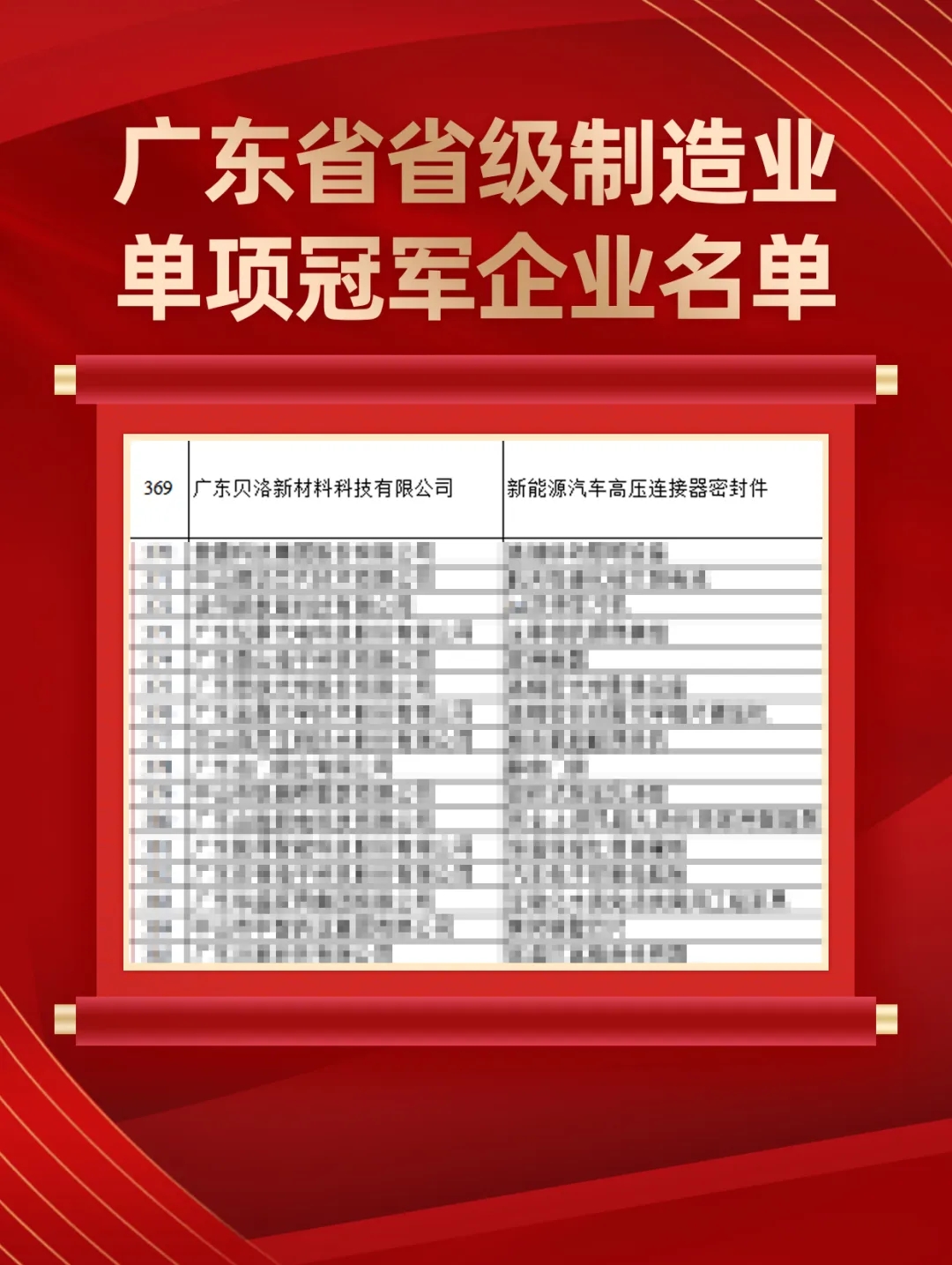 “广东省制造业单项冠军”是广东省制造业领域的最高荣誉之一,认定标准极为严苛,PA旗舰厅以“新能源汽车高压连接器密封件”作为主导产品获此殊荣,是本次唯一一家高压连接器密封件企业,这是对高压连接器市场与密封技术实力的最佳诠释。