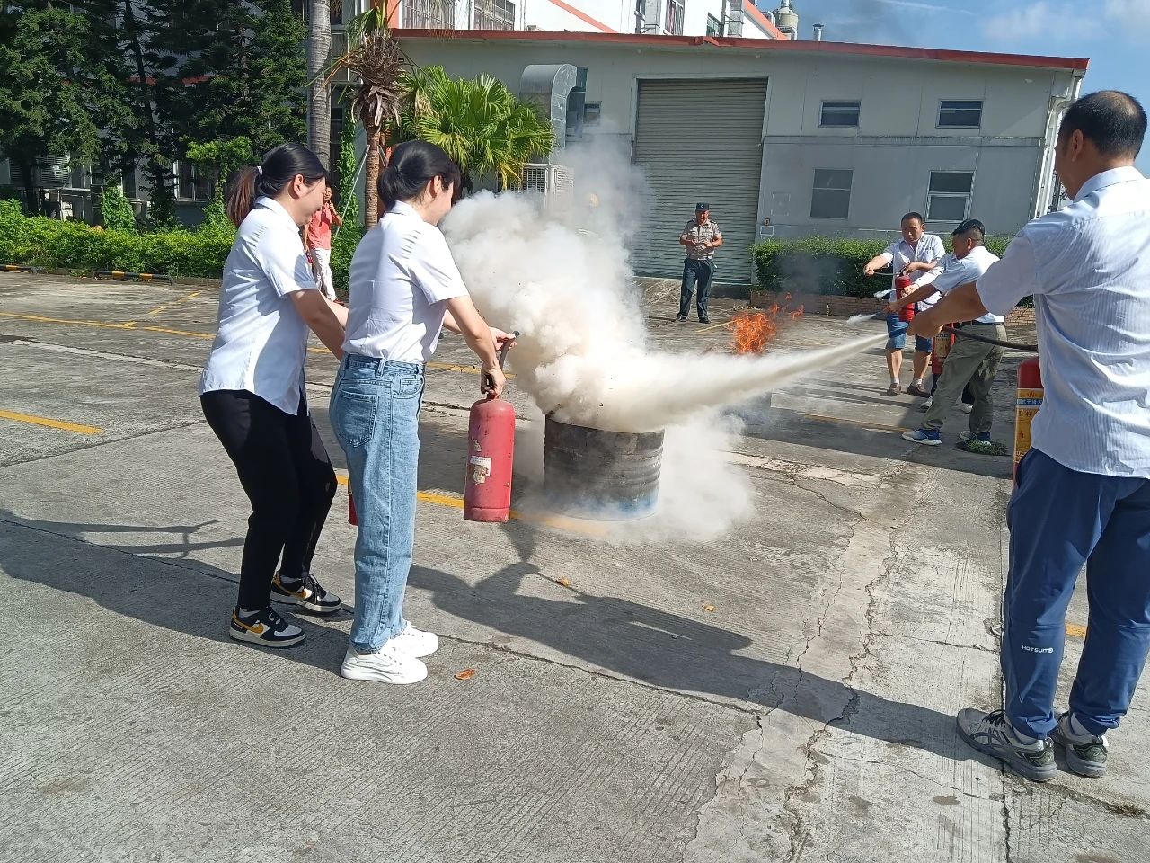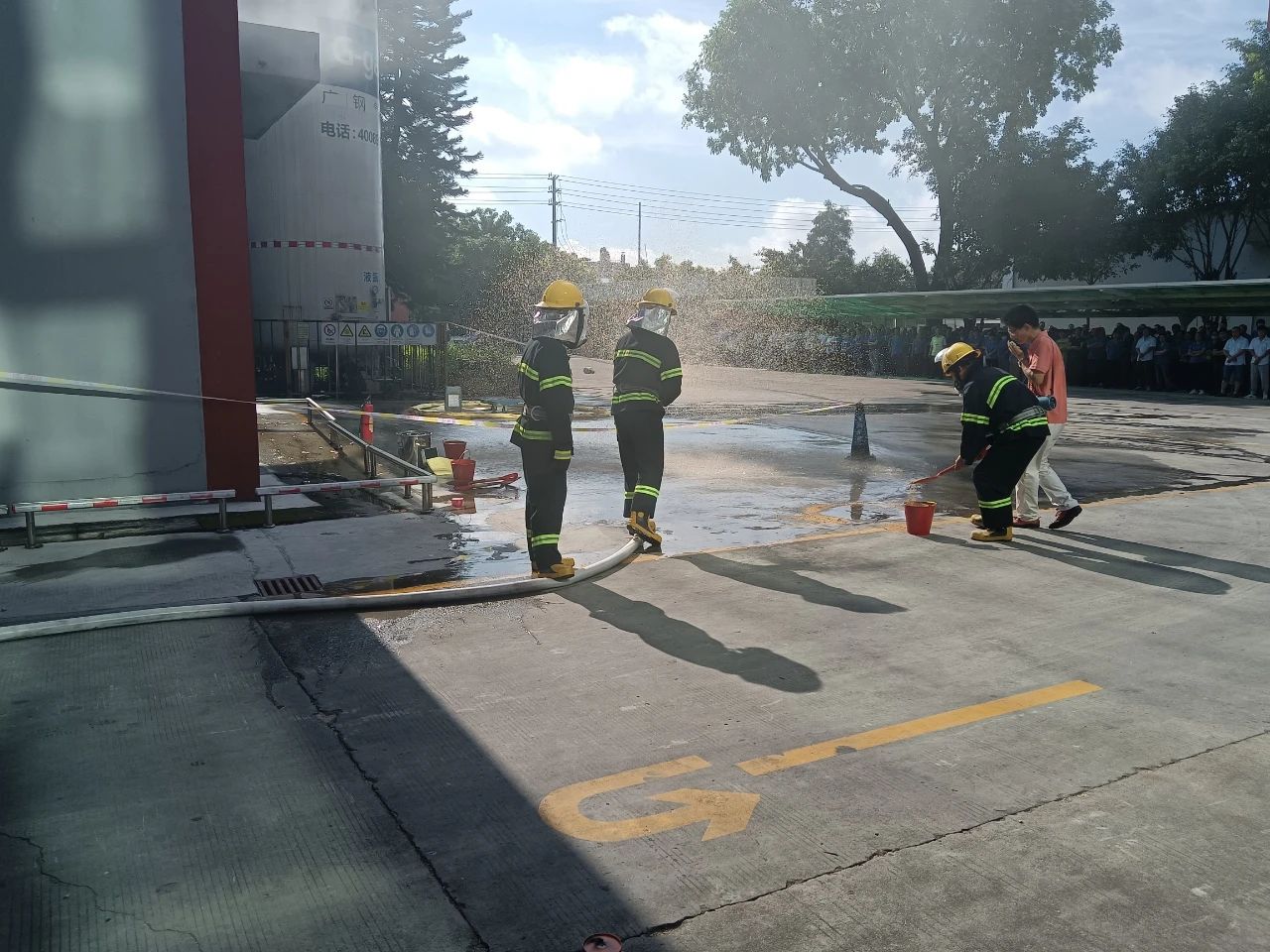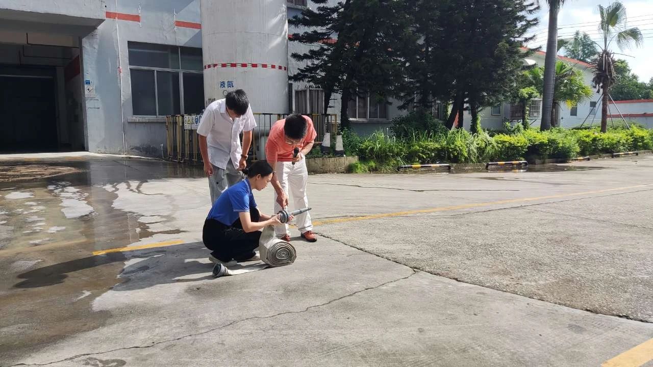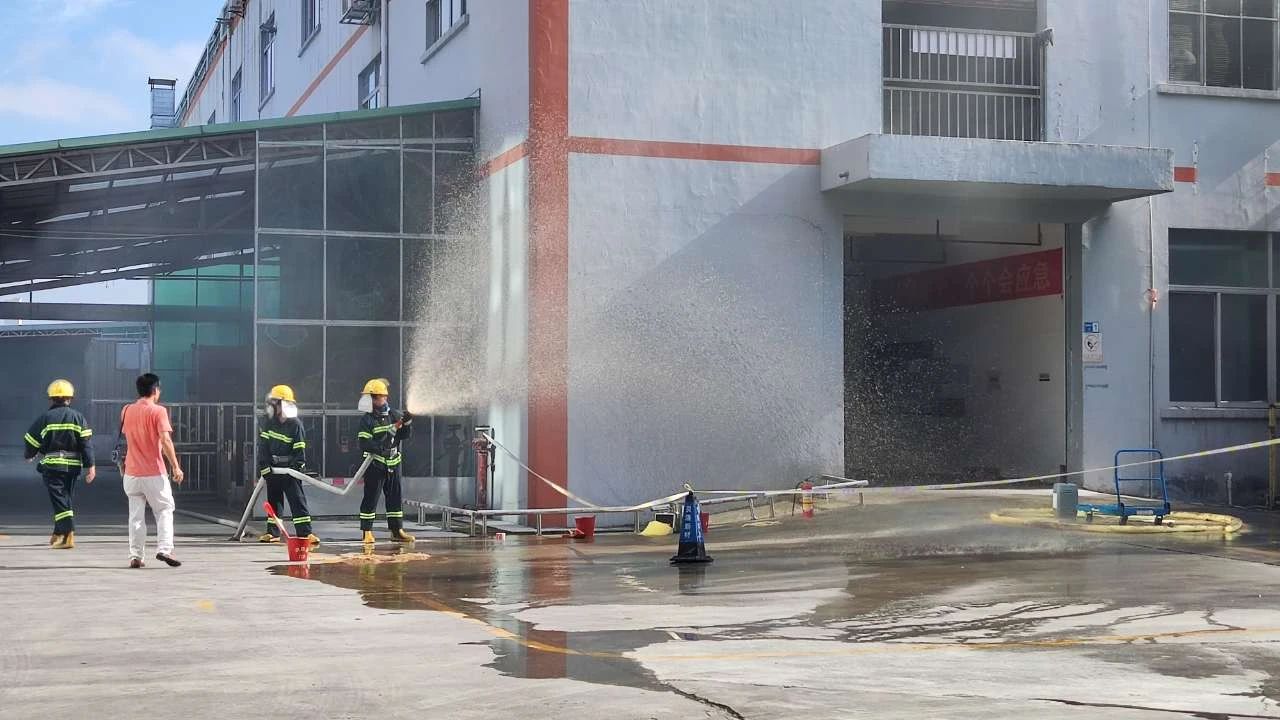 本次演练模拟厂区生产车间发生化学品泄露并着火,厂区工人发现灾情后,立刻启动火灾应急预案,快速响应灭火救援和开展人员疏散,经过紧张有序的救援,化学品和火势得到及时扑救,演练取得了预期效果。