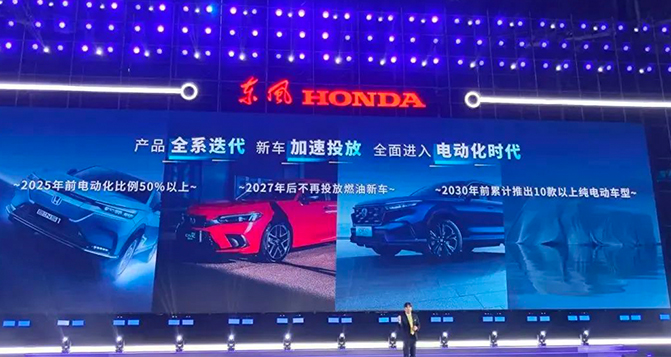 在2023上海车展上,本田中国宣布全面进入电动化时代,2027年后,本田在中国推出的所有车型均为混合动力车型和纯电动车,不再投放新的纯燃油车型。到2035年,本田中国将实现纯电动车销售占比100%。此前,本田中国宣布,2030年起,在中国市场将仅销售纯电和混动车型,不再投放新燃油车,在新能源汽车快速增长的背景下,本田中国不得不提前其电动化进程。